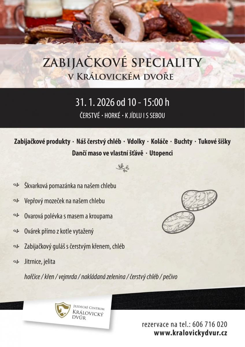 Rezervace míst doporučena, množství specialit je omezené: 606 716 020