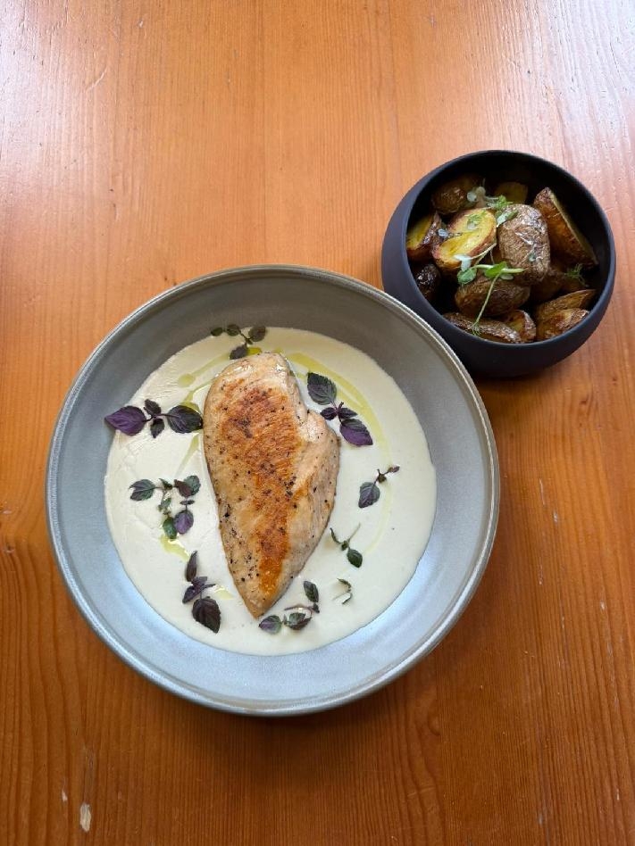 | GRILOVANÉ KUŘECÍ PRSO S OPEČENÝM BRAMBOREM A OMÁČKOU Z NIVY | 249,- | |