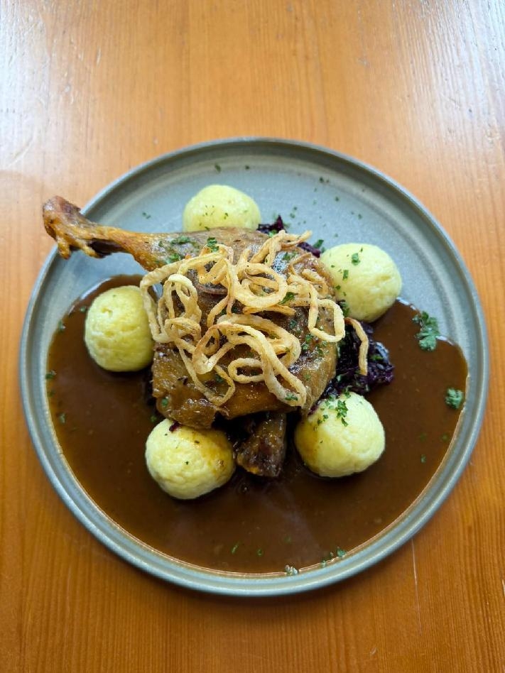 | KONFITOVANÉ KACHNÍ STEHNO S BRAMBOROVÝM KNEDLÍKEM A DUŠENÝM ČERVENÝM ZELÍM | 259,- | ||||||||