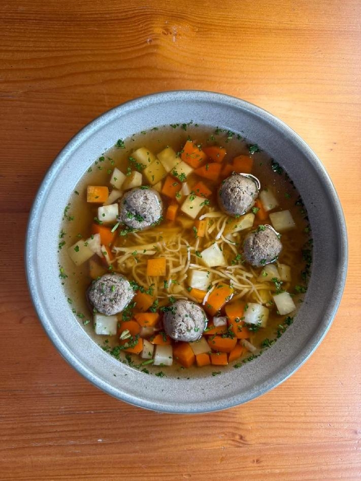 | HOVĚZÍ VÝVAR S KOŘENOVOU ZELENINOU, JÁTROVÝMI KNEDLÍČKY A DOMÁCÍMI NUDLEMI | 89,- | |
