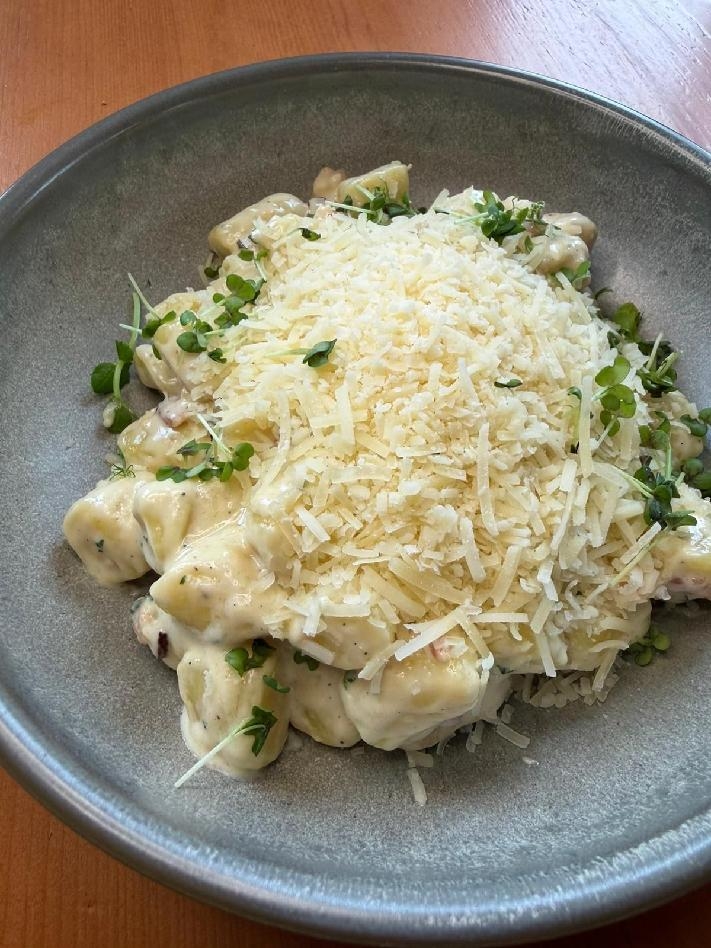 | NOKY S KUŘECÍM MASEM, SLANINOU, SMETANOU A PARMAZÁNEM | 189,- |