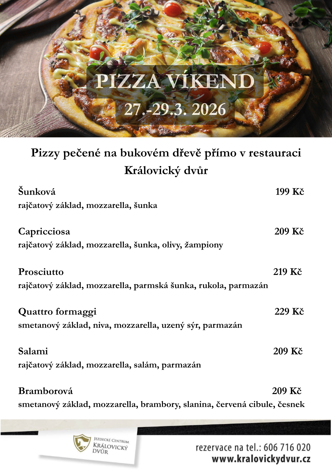 Vzhledem k velké oblibě pizza víkendů u rodin doporučujeme rezervaci předem.