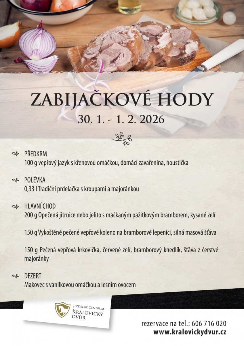 Zveme na masopustní zabijačkové hody, které probíhají po celý víkend v restauraci Královického dvora.